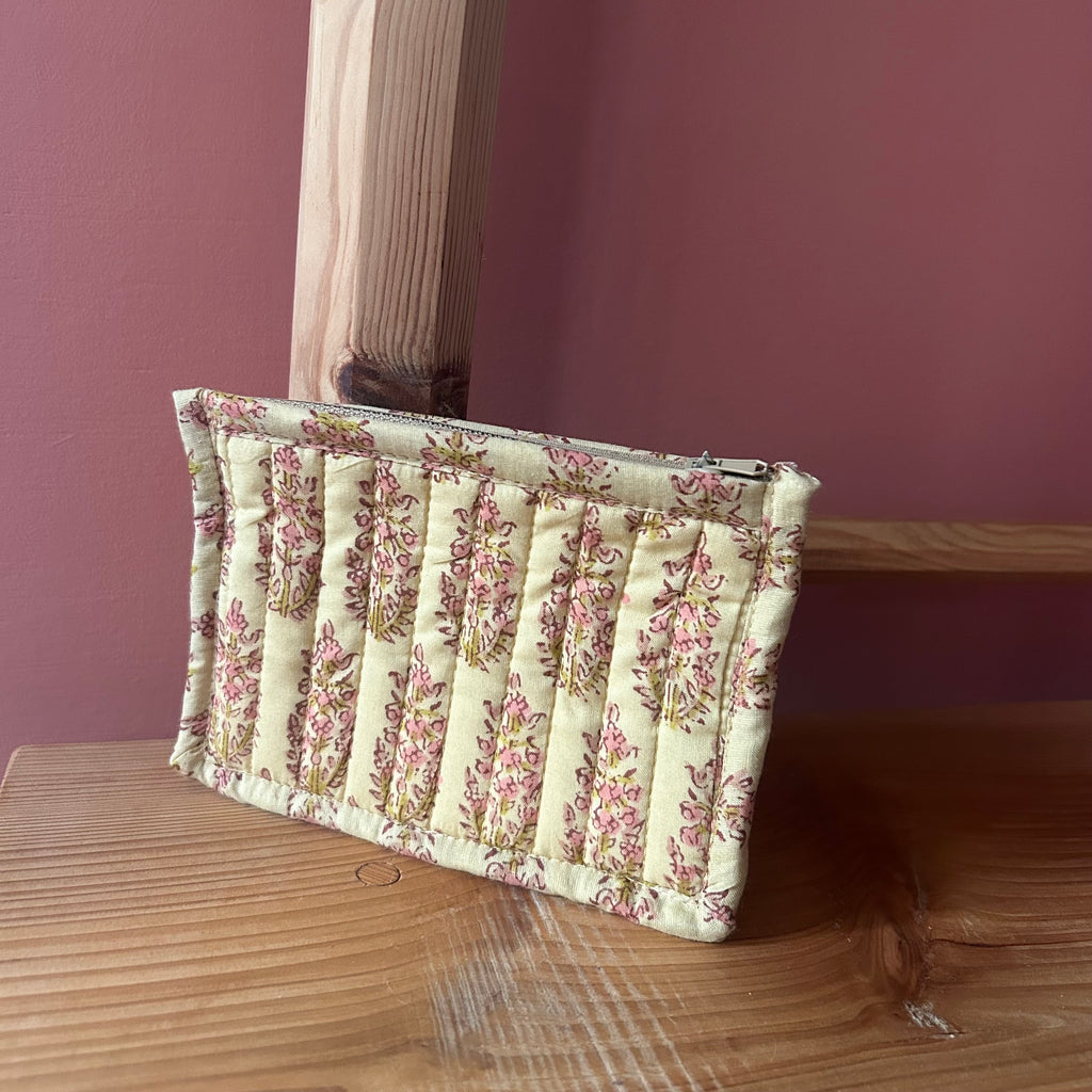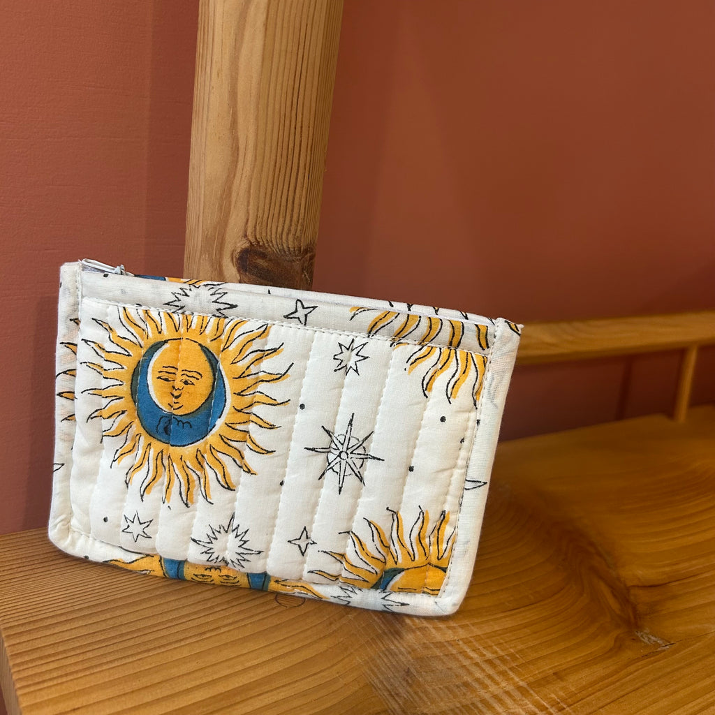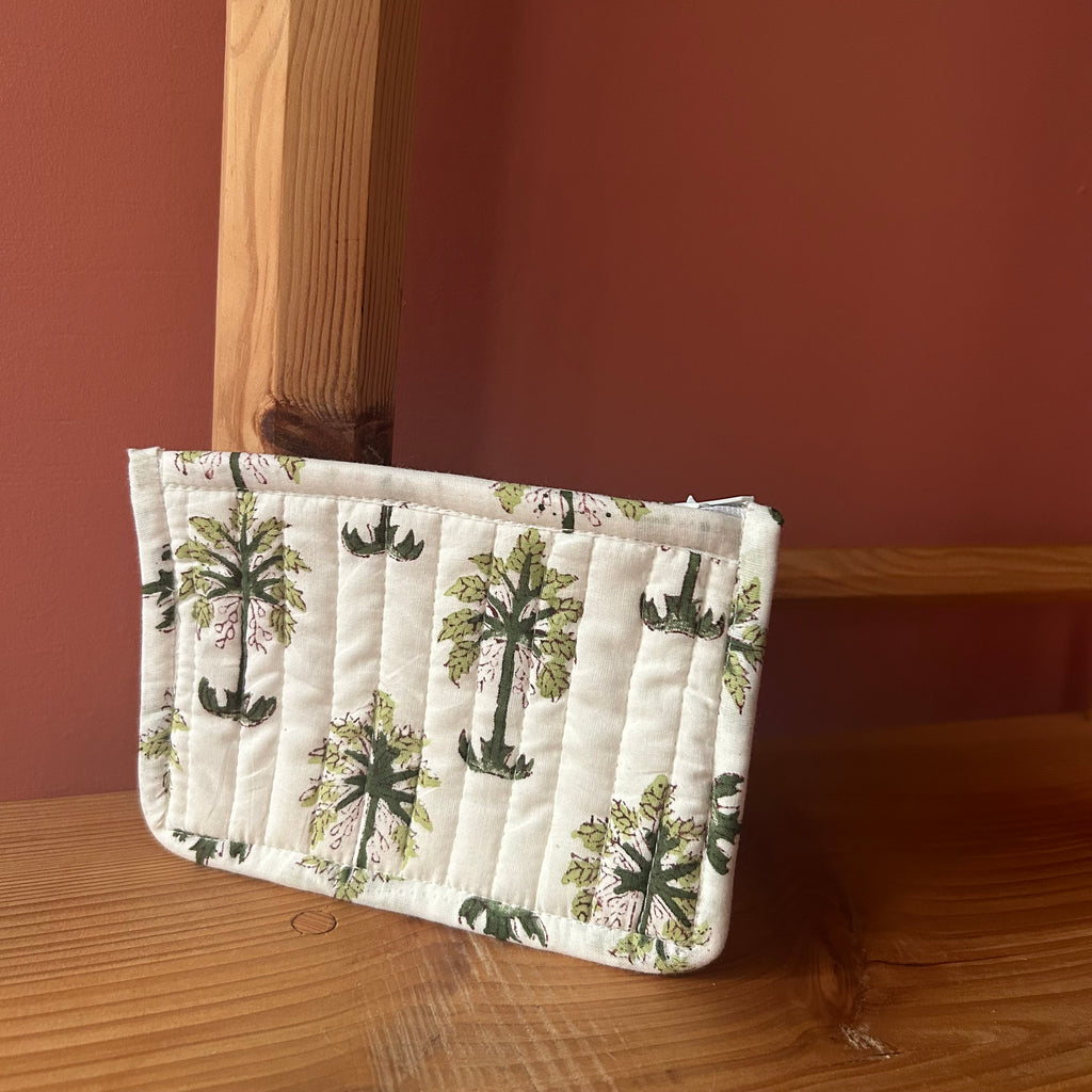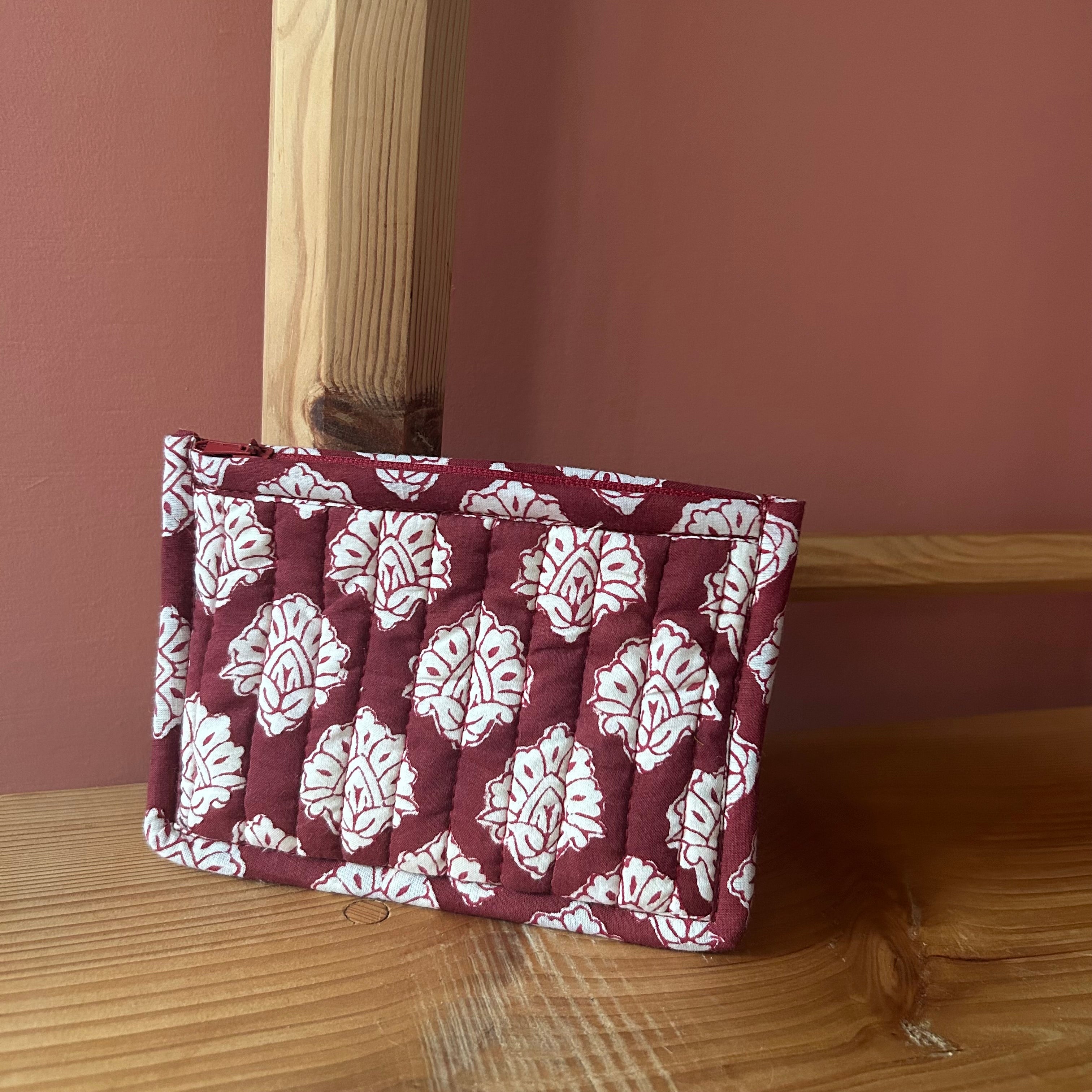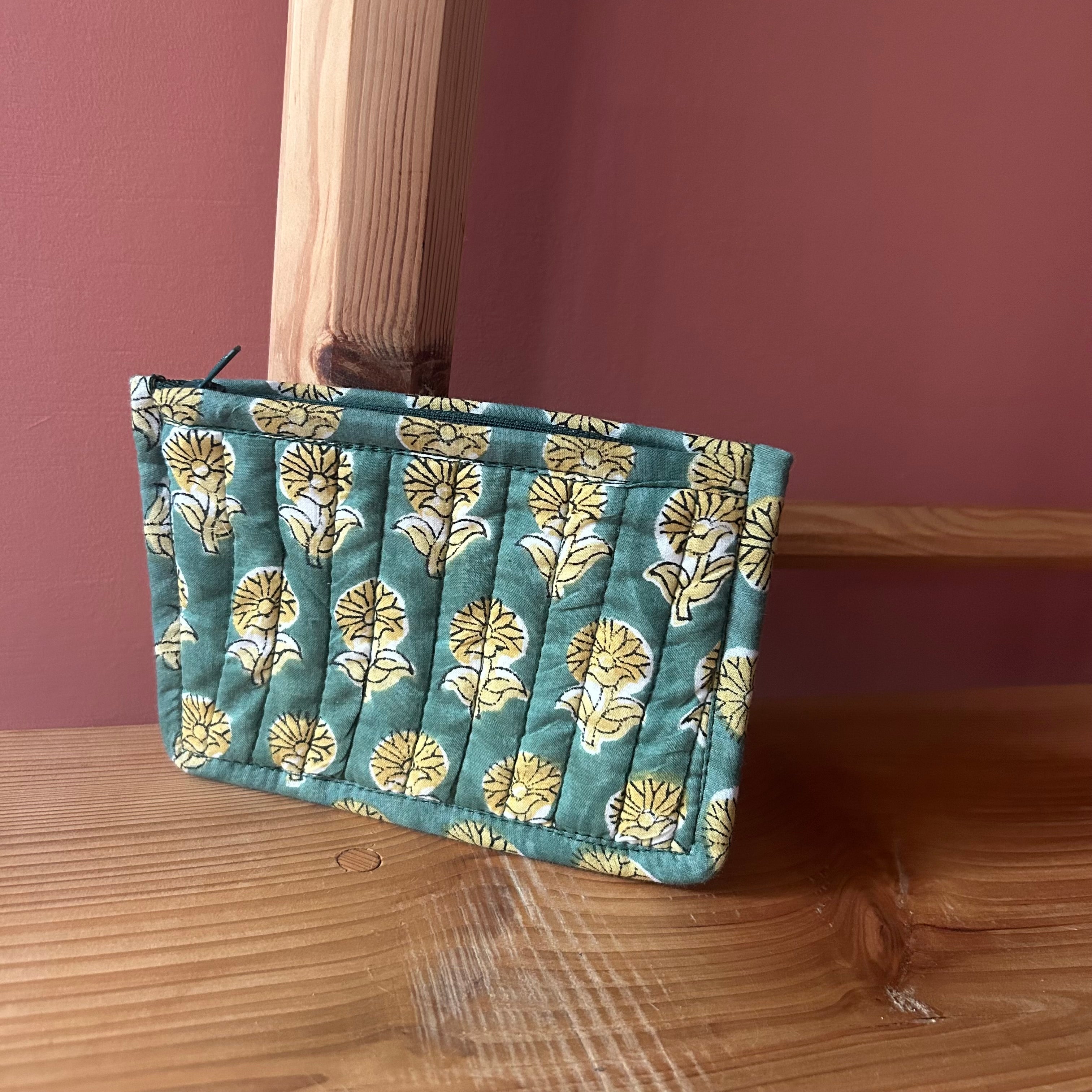 a perfect sized coin purse for all sorts of things that rattle around in your handbag or rucksack. They are all 100% block printed cotton and approximately 14 cm x 10 cm.