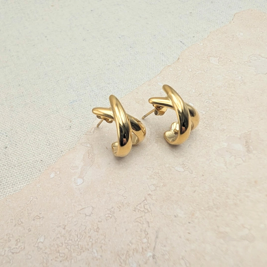 Either alone or as part of a stack, these chic cross gold hoops look fab.