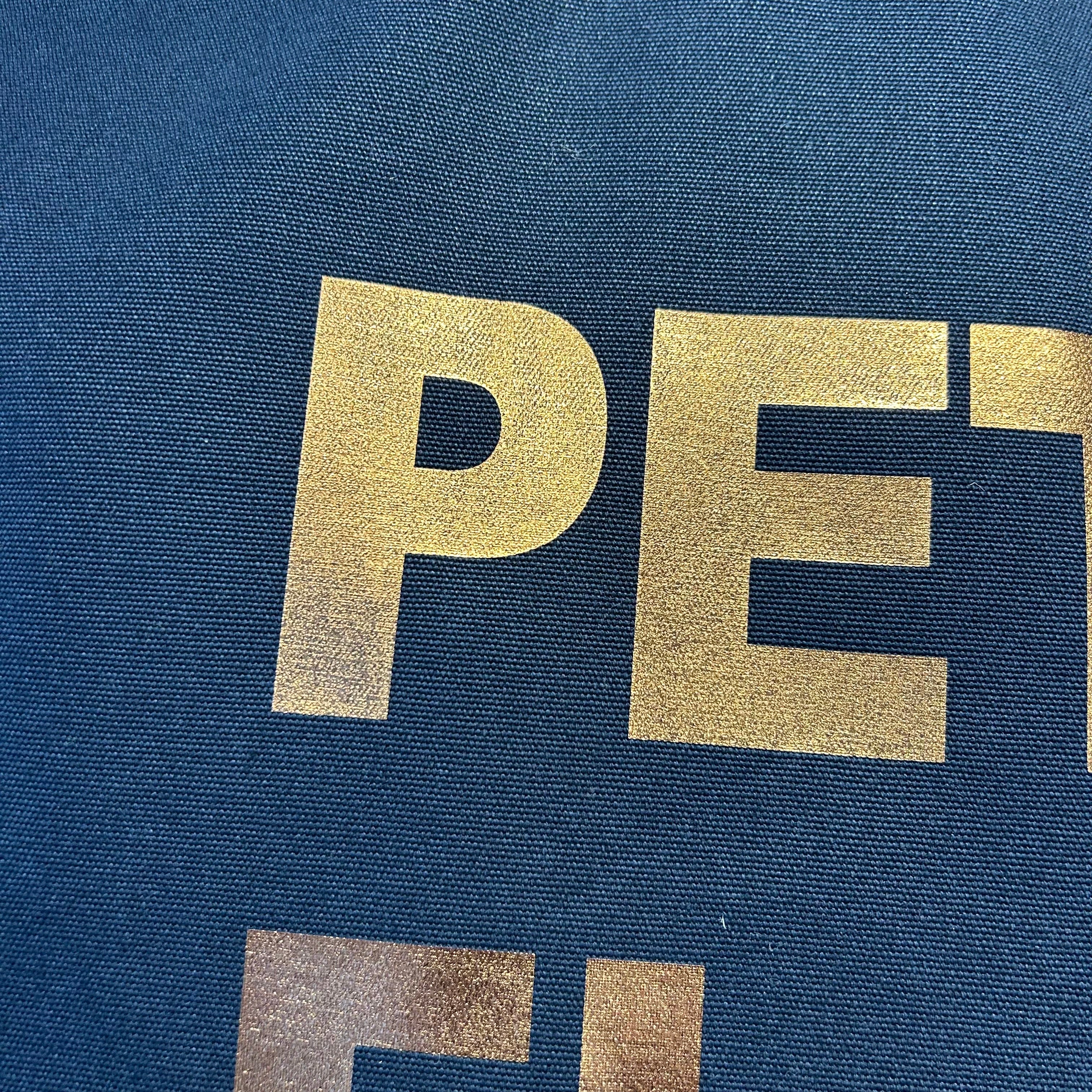 Our extra large personalised navy tote bag saying 'petha fi' which is 'my stuff' in Welsh.