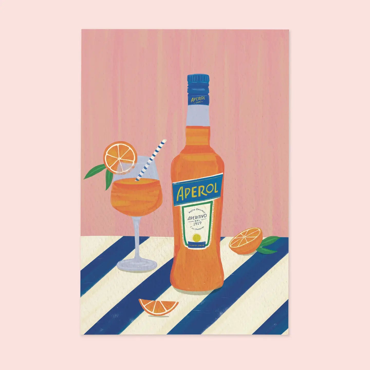 The most summery of drinks! This aperol spritz print is postcard size and blank on reverse so could be sent in the post, gifted or framed as a mini print.
