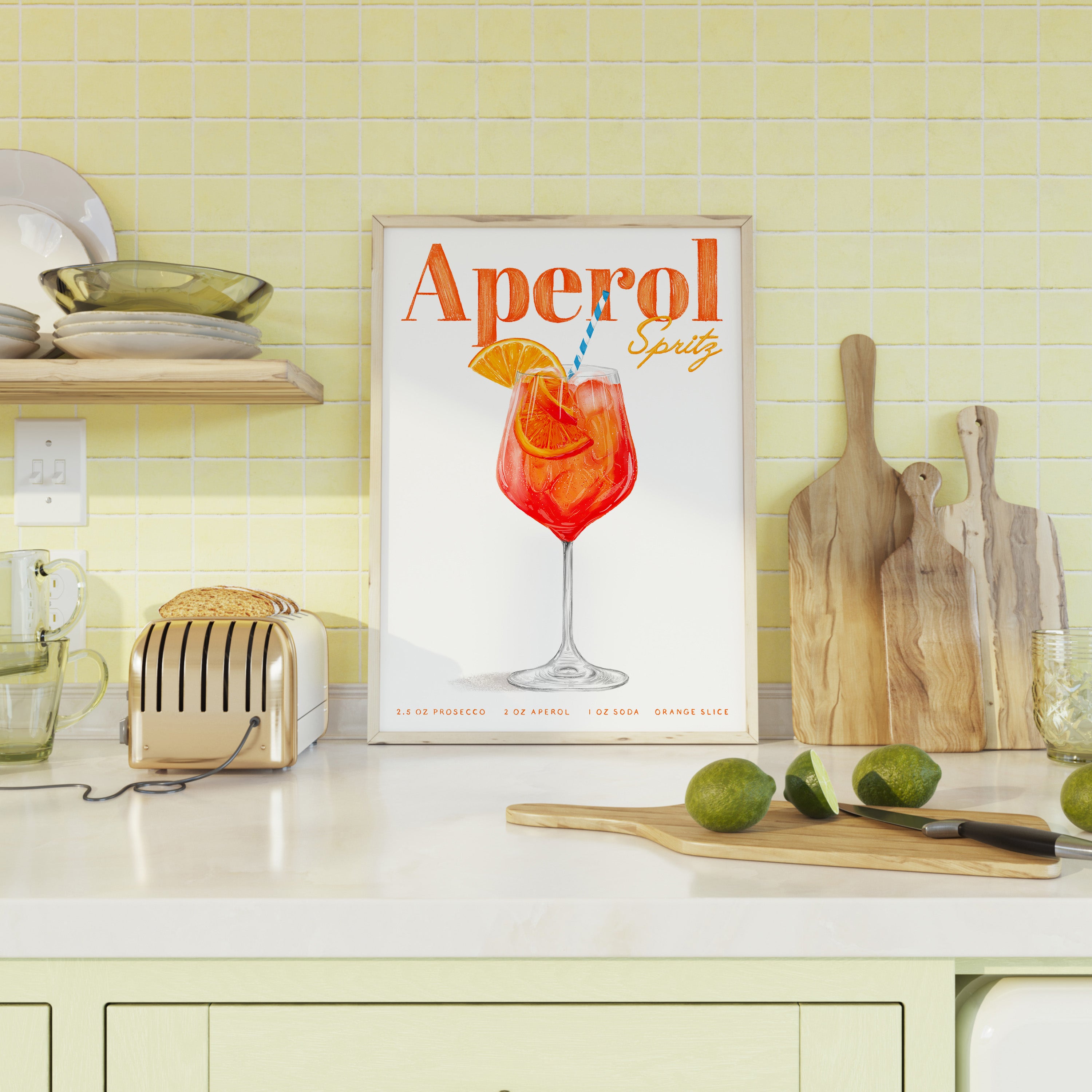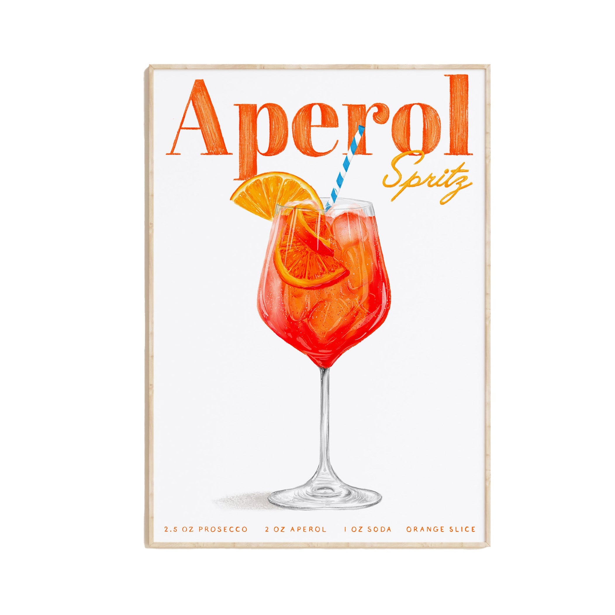 Hand-drawn illustration of a aperol spritz. Print is by illustrator Charlotte Godfree.