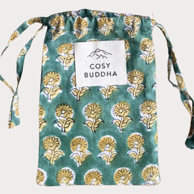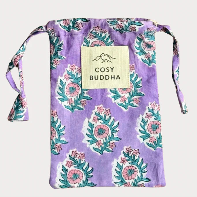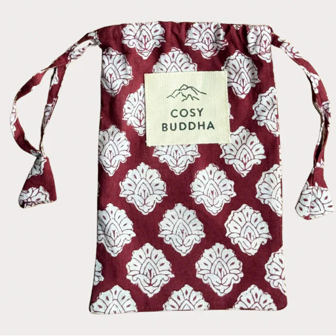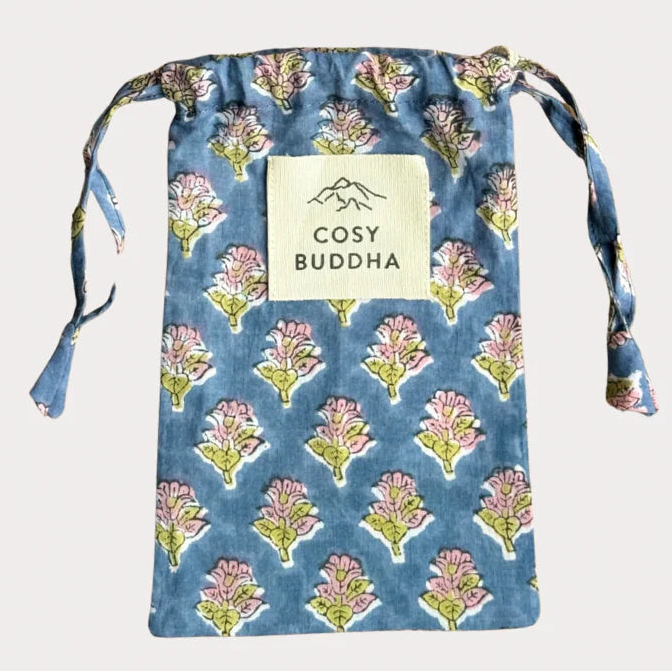 Each of these beautiful block print cotton eye masks comes inside a matching drawstring cotton pouch. Perfect for gifting for all year round use.