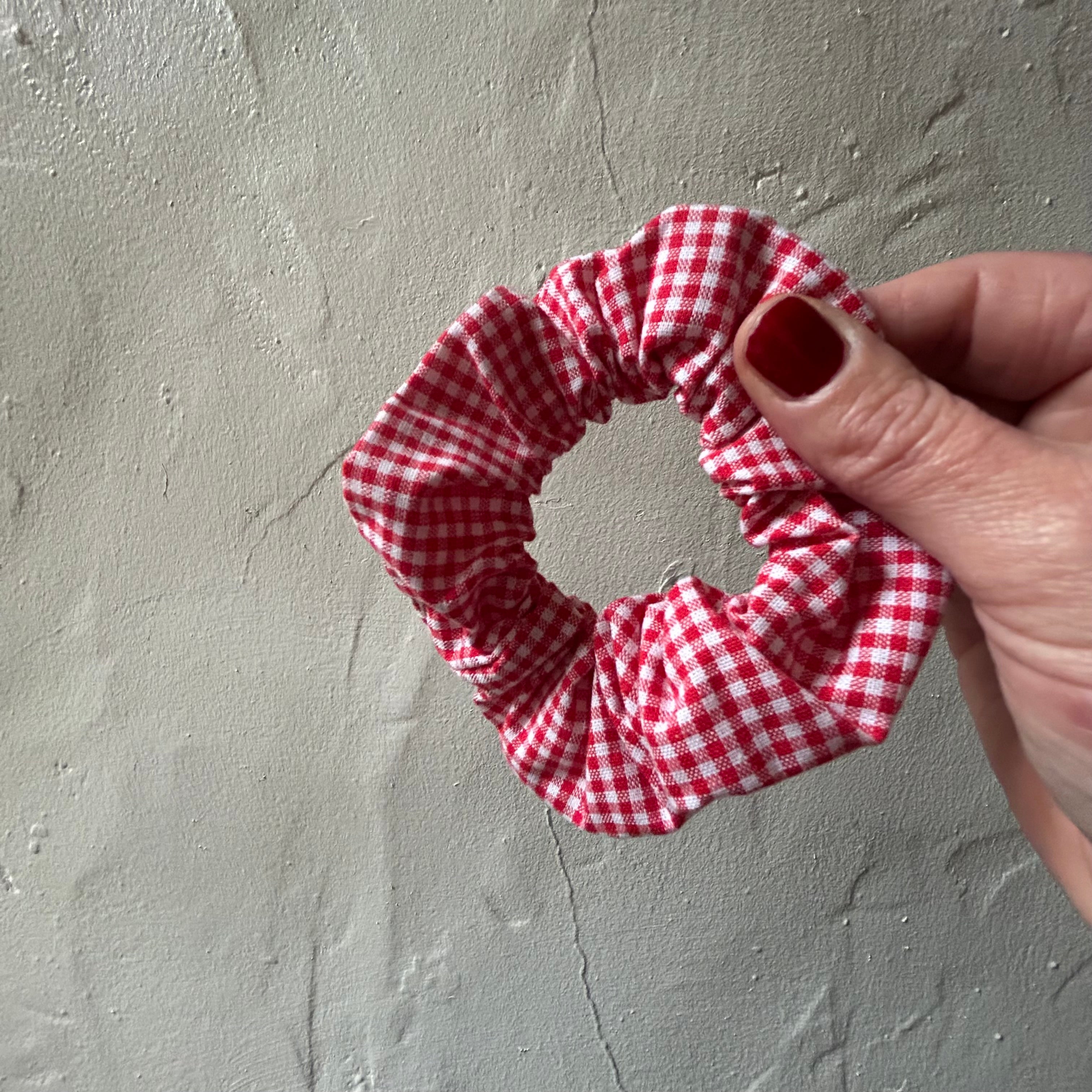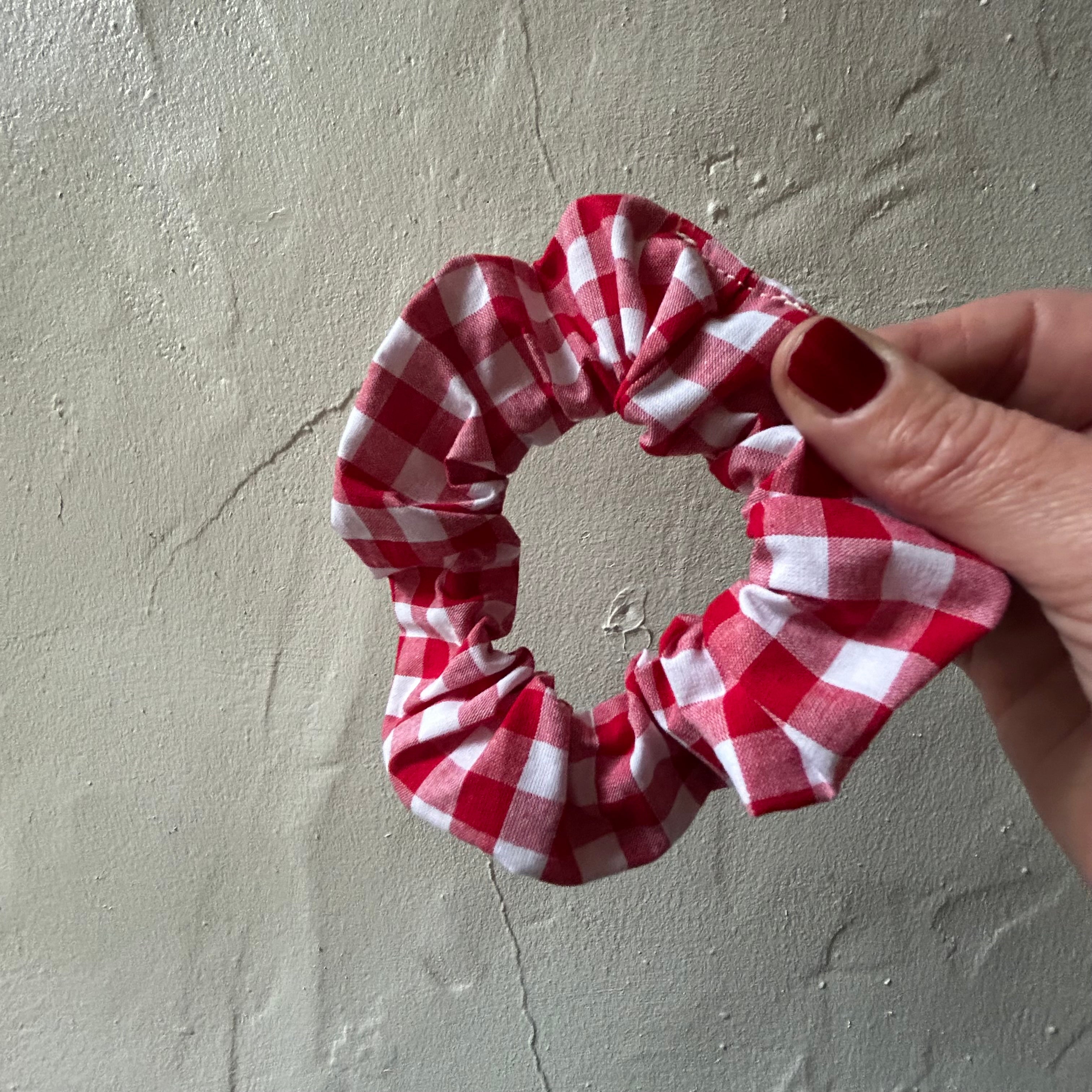 handmade red scrunchies to give any outfit that festive feel.