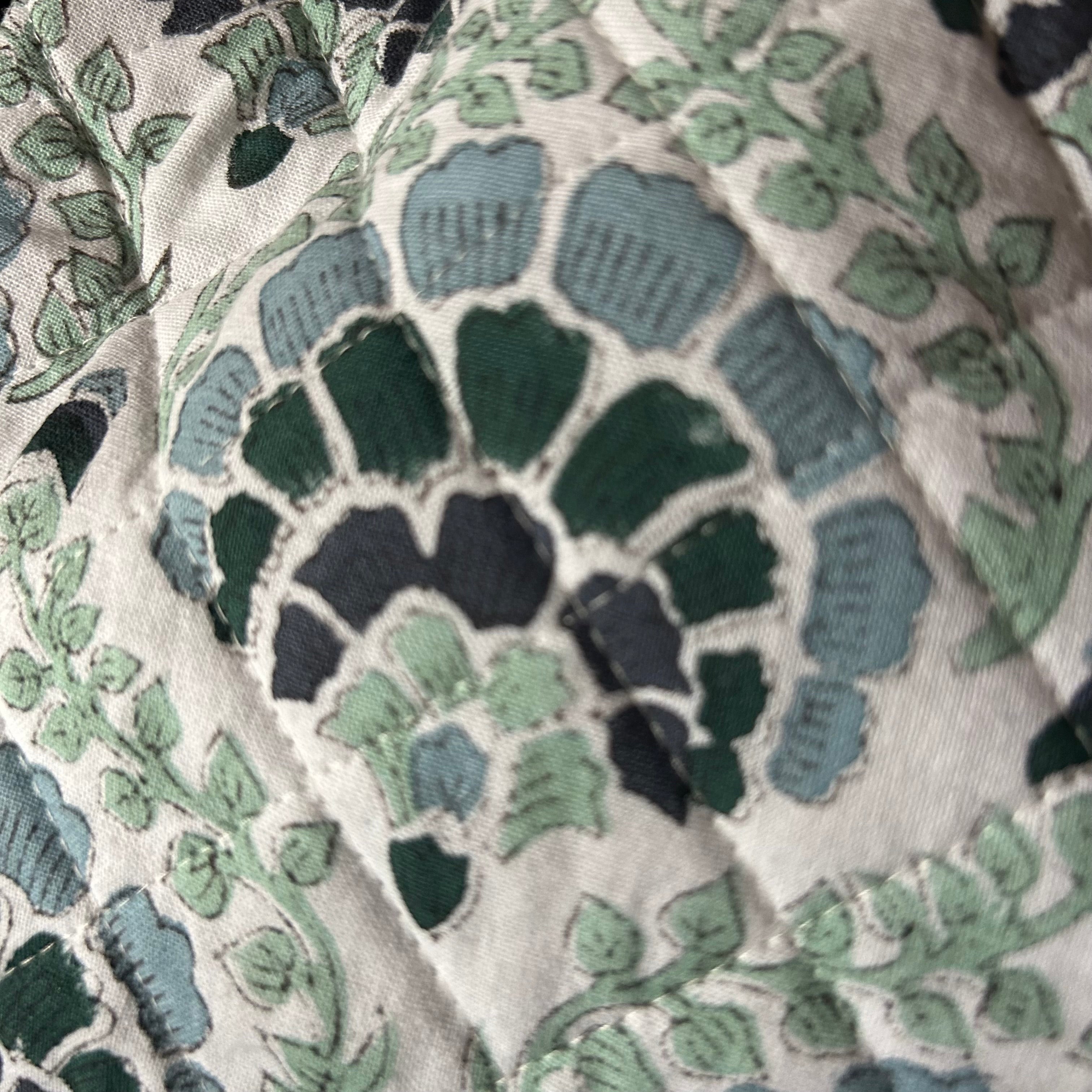 This hot water bottle cover is made from beautiful hand block-printed cotton.